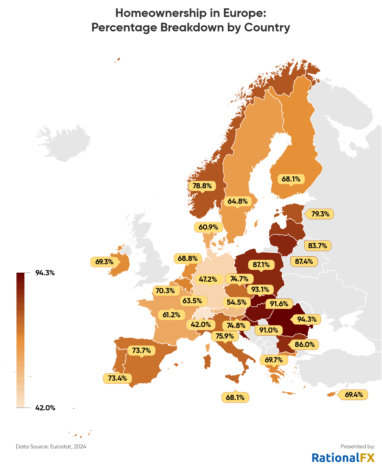 Kodu omamine Euroopas on muutunud üha kättesaamatumaks, kuna tõusvad hinnad, regulatiivne keerukus ja linnastumise tihedus kujundavad ümber eluaseme mõiste kui sellise. Rumeenias (94,3%), Slovakkias (93,1%), Ungaris (91,6%) ja Horvaatias (91%) omas 2024. aastal endiselt valdav enamus elanikkonnast oma kodu võtmeid, peegeldades ajaloolist pärandit ja sügavalt juurdunud kultuurilisi harjumusi.
