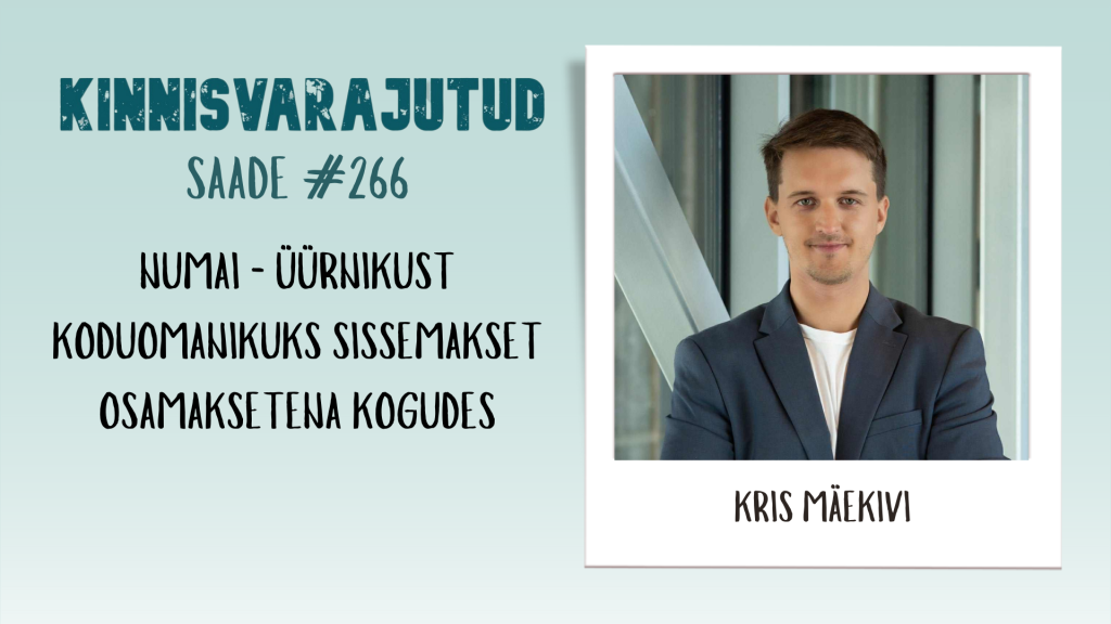 “Kinnisvarajutud” podcasti 266. osas on meil külas NUMAI müügijuht Eestis Kris Mäekivi, kes räägib lahti Leedust alguse saanud ettevõtte missiooni ja väärtuspakkumise. NUMAI puhul on tegemist teenusepakkujaga, kes pakub meie kinnisvaraturul “üüri, et osta” teenust.