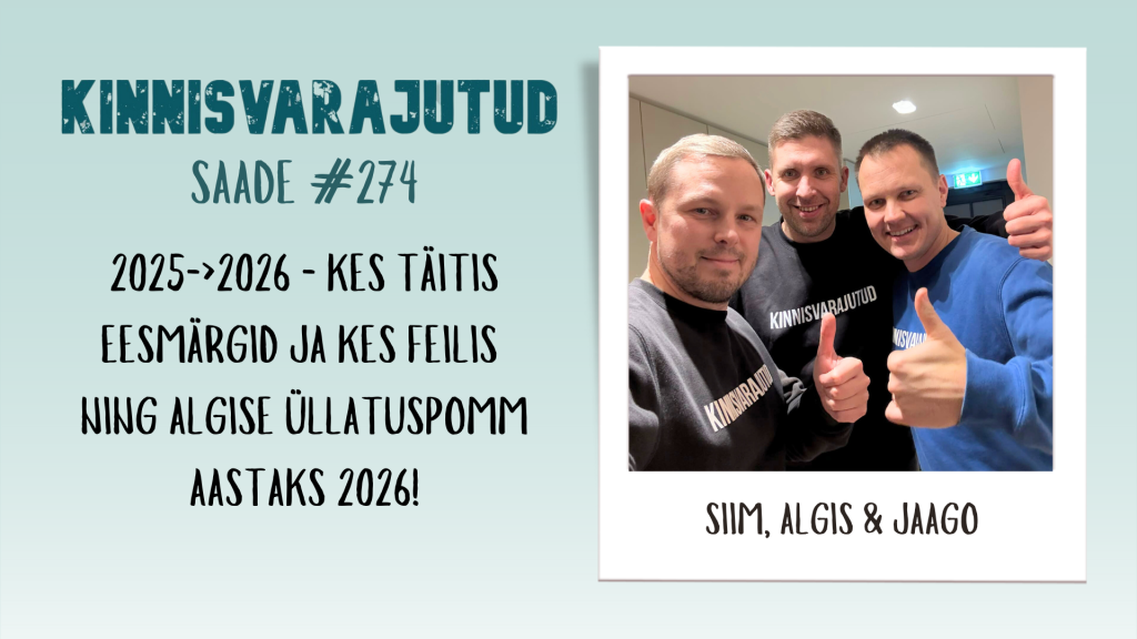 “Kinnisvarajutud” podcasti 274. osas astume taas traditsioonilist rada, kui käes on 2025. aasta eesmärkidele tagasi vaatamise ning alanud aasta eesmärkide püstitamise aeg! Stuudios on Algis, Siim ja meie tavapärane abikaassaatejuht Jaago.
