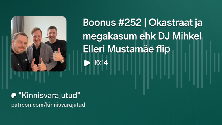 “Kinnisvarajutud” podcasti boonusosas #249 haaravad Algis ja Siim kinni ühest kultuurisõdade tallermaalt USA-st varastatud täiesti päriselulisest teemast ning arutavad, kas kinnisvaramaaklerit peaks valima poliitiliste eelistuste põhjal? Kas tohiks üldse koostööd teha “vale” erakonda toetava või “valesid” mõtteid mõtleva kinnisvaramaakleriga või tuleks kohe eos rasvane punane joon vahele tõmmata?