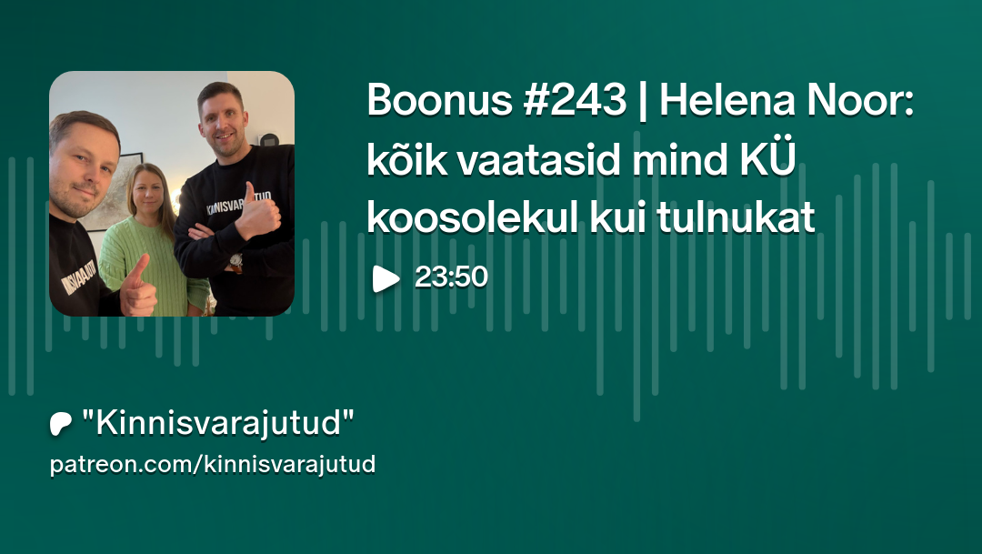 “Kinnisvarajutud” Boonus #243 | Helena Noor: kõik vaatasid mind KÜ koosolekul kui tulnukat